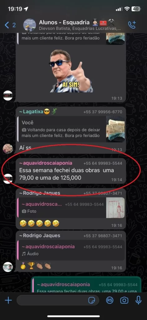 Grupo de Whatsapp com alunos