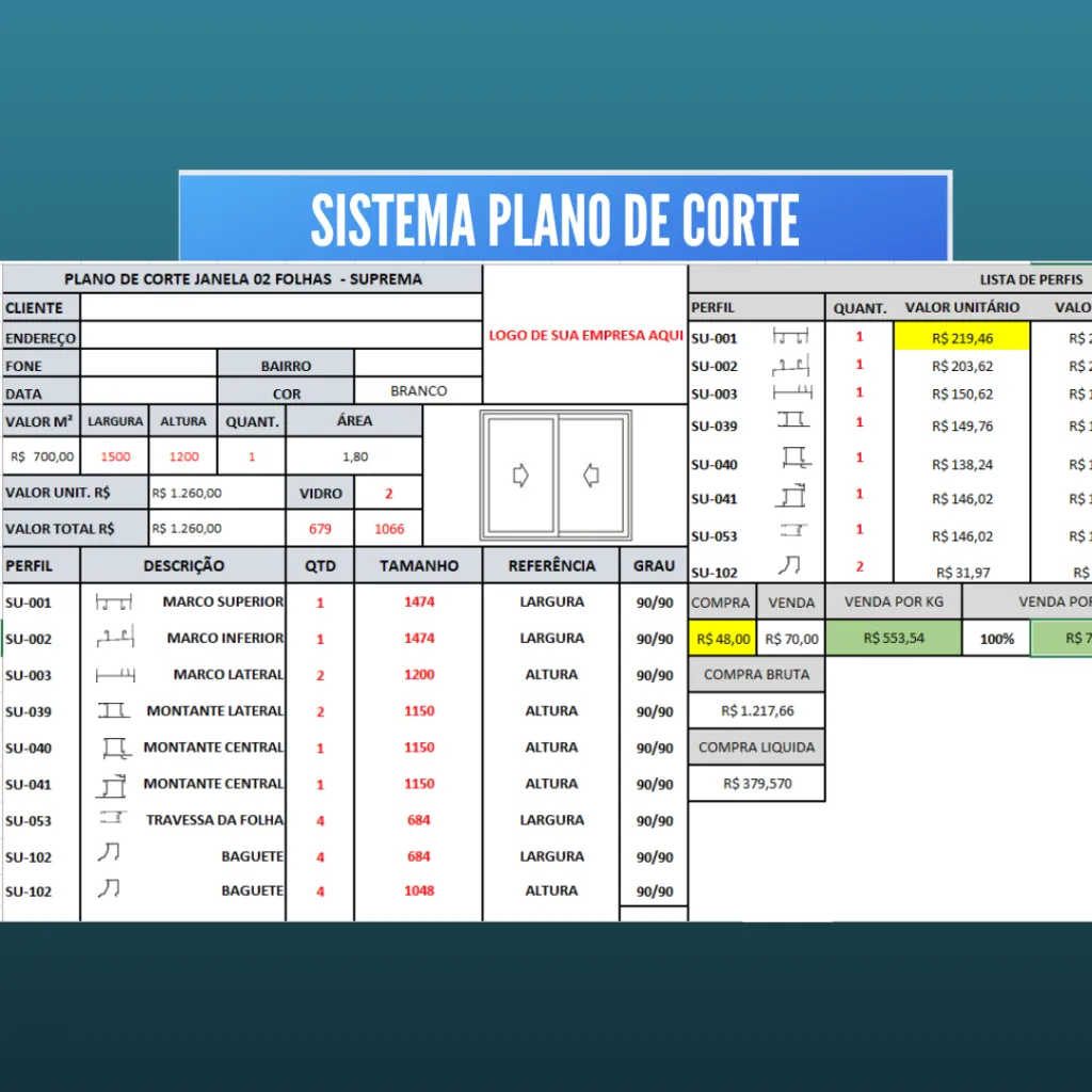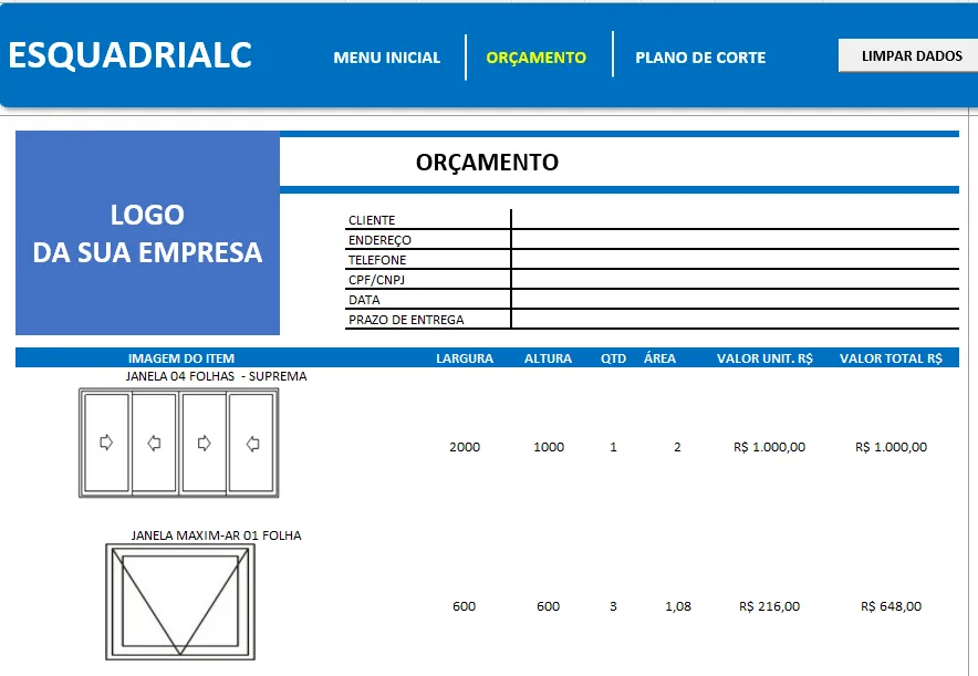Planilha de Orçamento e Plano de Corte